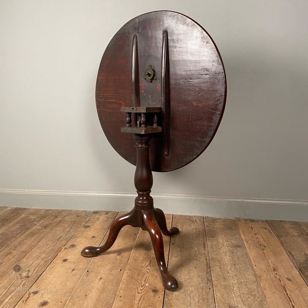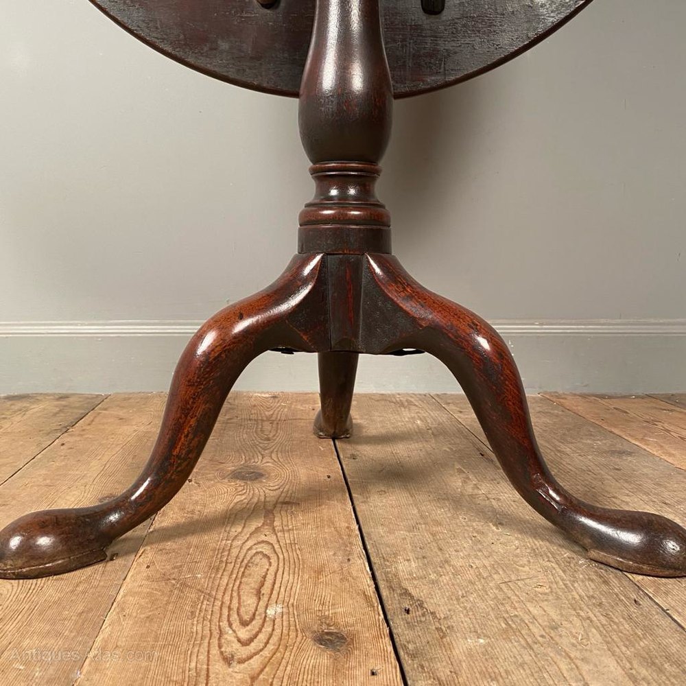 18th century Bird Cage tripod table, having a revolving tilt top with and raised on a baluster column, terminating in 3 cabriole legs with heavy pad feet. Superb untouched example in wonderful original condition with rich colour and patina. English, Circa 1750.