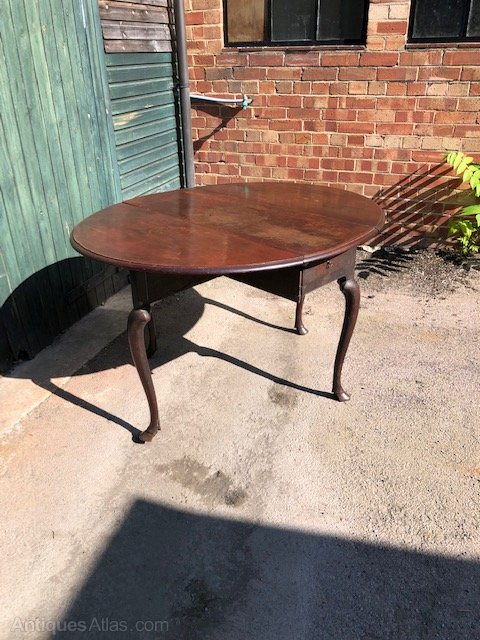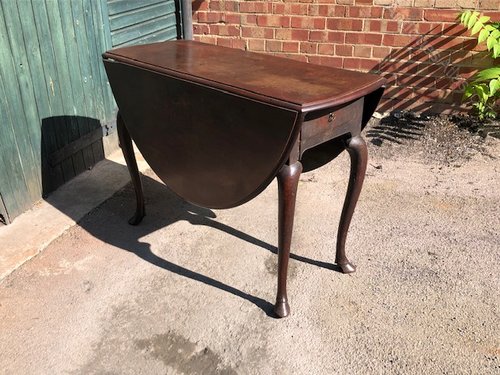 18th century mahogany hoof-foot cabriole-leg gateleg table with drawer