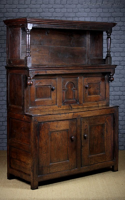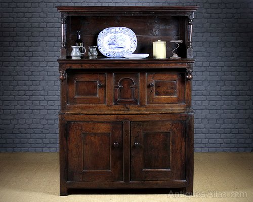 Before the Welsh dresser came the cwpwrdd tridarn (or three piece cupboard). Recognised now as a distinct form of antique furniture unique to an area of North West Wales roughly comprised of Snowdonia and Caernarfon. Produced from the mid 17th.c. until the end of the 18th.c. it is itself an adaption of the more common ‘court’ cupboard, with the addition of a canopied top tier providing an area for the display of the household’s best tableware protected from the dirt and soot of an open fire. Over time this display section grew to include several shelves, the middle cupboard was lost and the form of the typical Welsh dresser emerged.