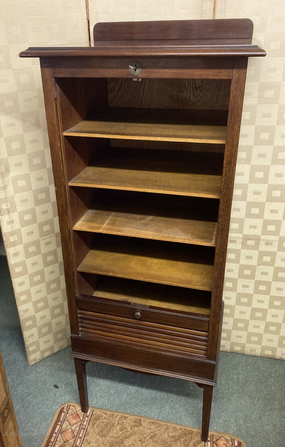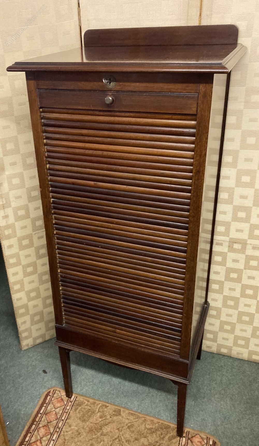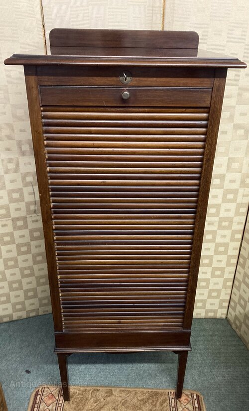 NO-252-Early 1900s mahogany Tabour Filing cabinet working lock & key in very good condition