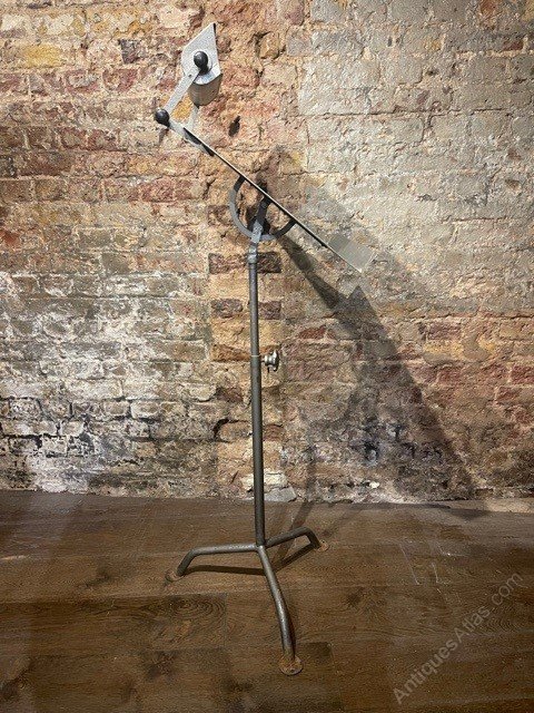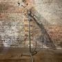 1920s musical stand on an adjustable base and light fitting attached.