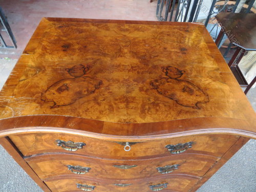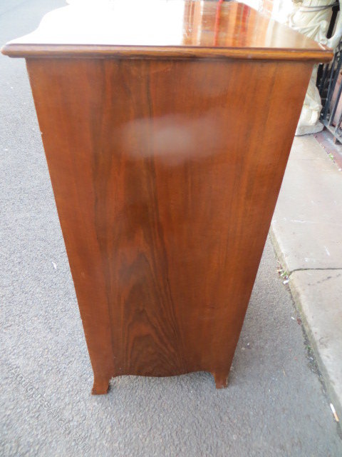 Good Quality 1920s Walnut serpentine fronted chest of drawers ,60 cm wide,50 cm deep ,107 cm high
