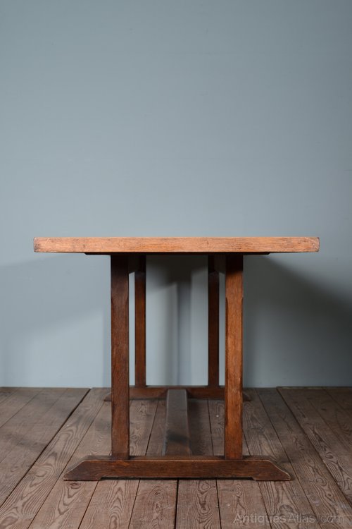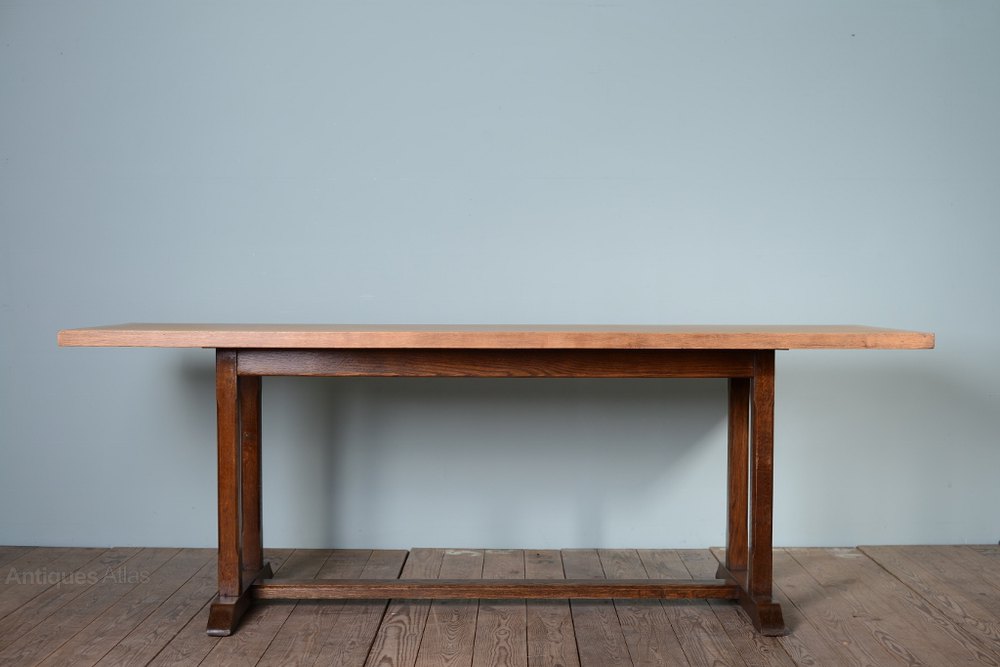 This is a great sized, English early 20th century oak dining table in the classic, refectory style.