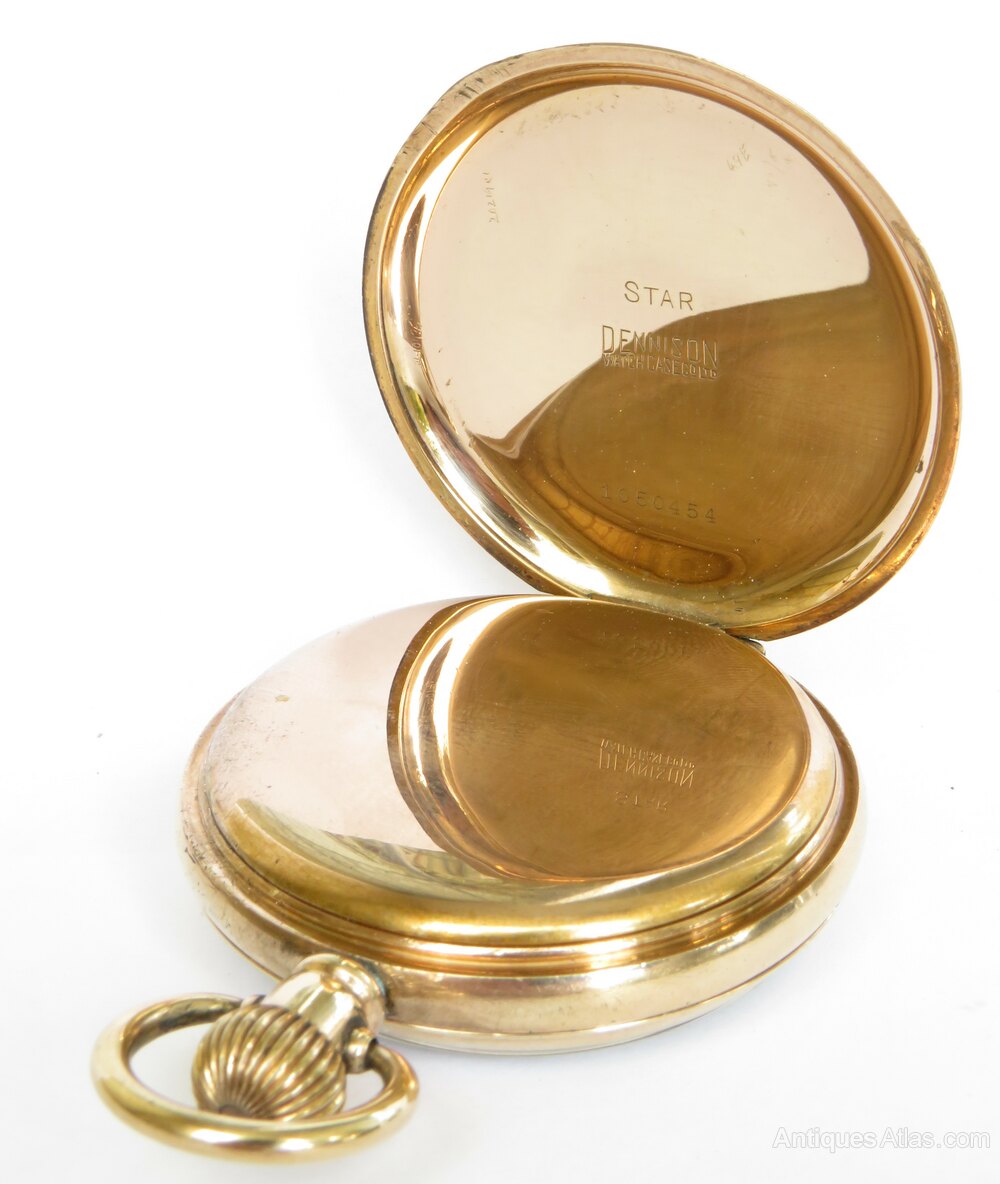 The watch measures 50mm diameter excluding the winding stem and the loop. The case is gold plated Star model from the Dennison Watch Case Company, a prolific manufacturer of watch cases and supplier to various watch makers. The case is in lovely condition.