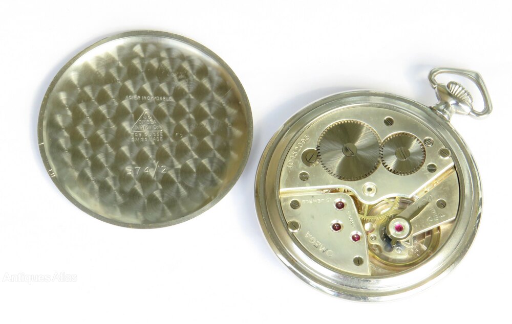 The watch measures 48mm diameter excluding the winding crown and the loop. The case is stainless steel and it is in lovely condition, just general light surface marks but nothing serious at all. The inside of the case back has the Omega logo, and the case reference 374/2.