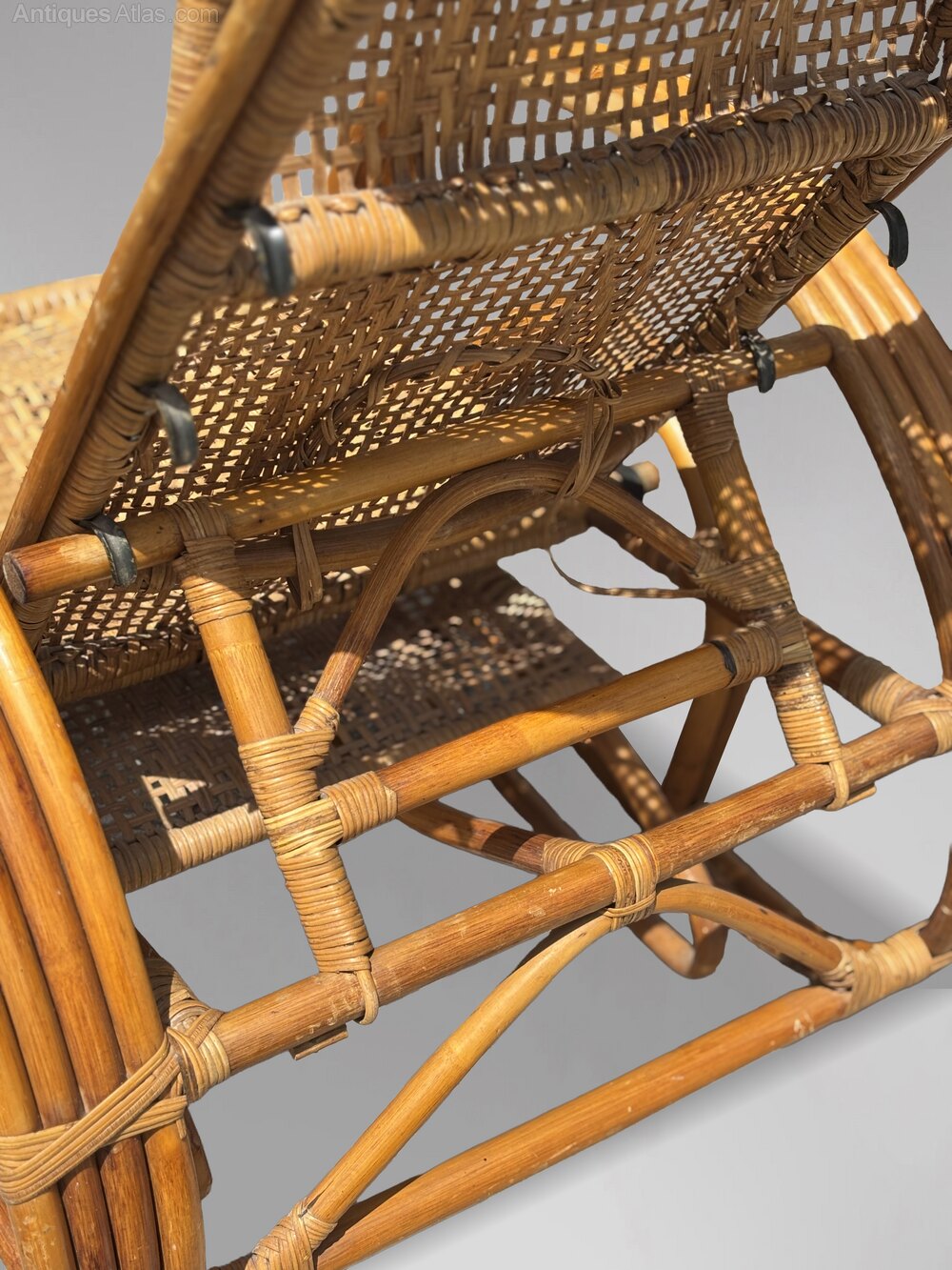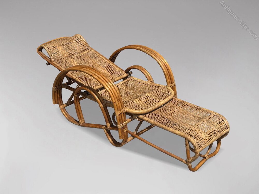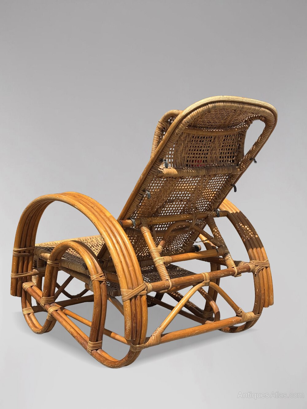 Good Quality Mid-Century Italian Bamboo & Rattan Reclining Chaise Longue Sun Lounger