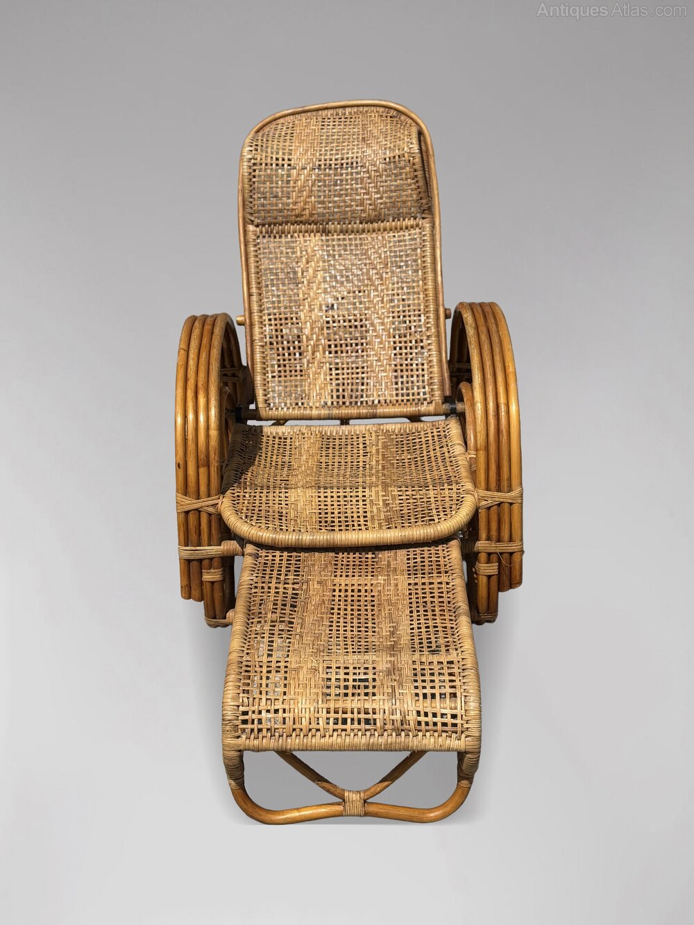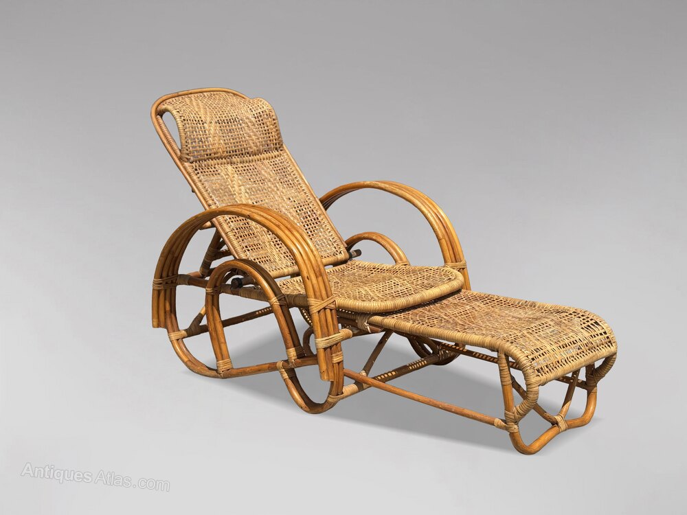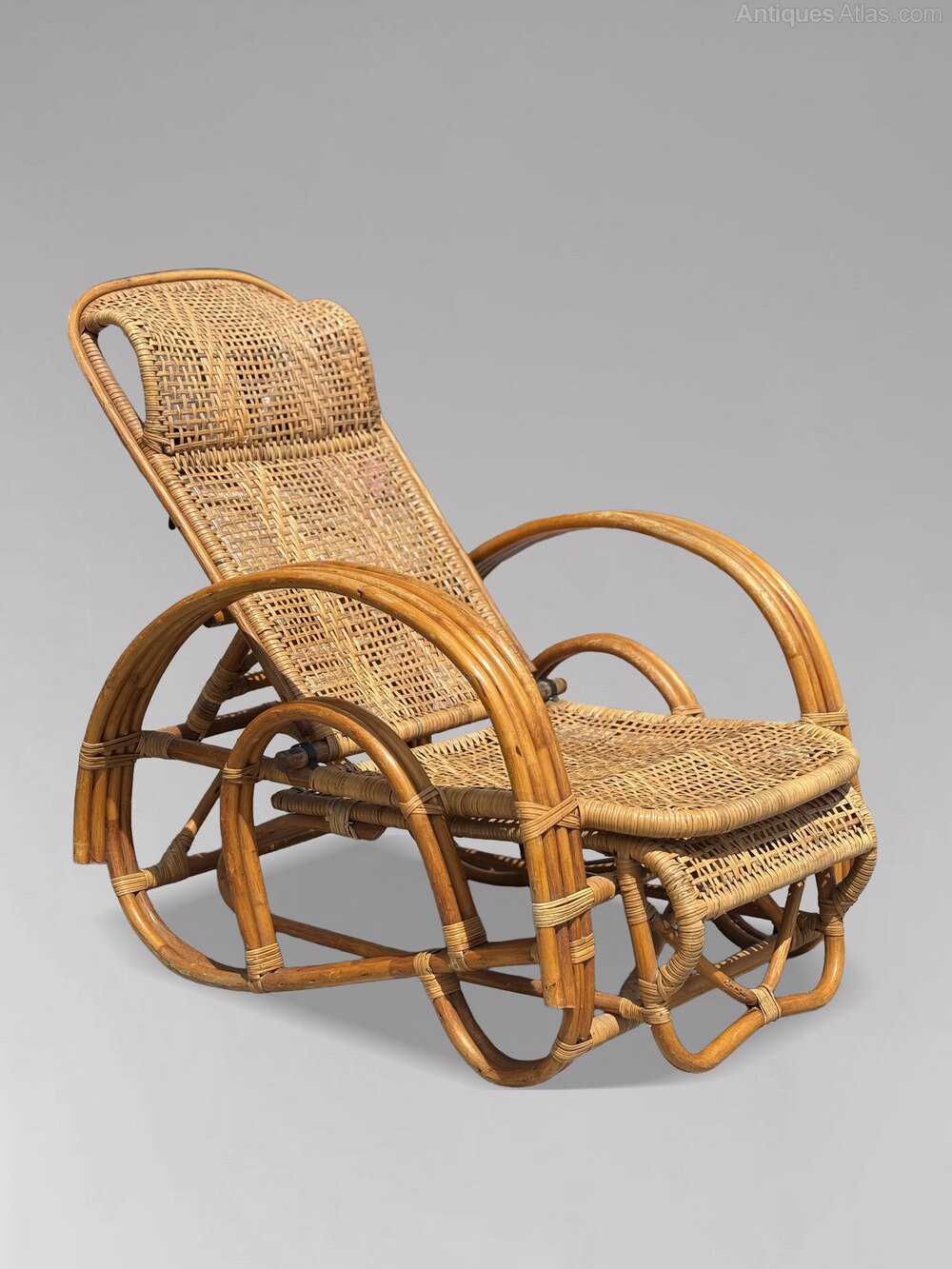 Good Quality Mid-Century Italian Bamboo & Rattan Reclining Chaise Longue Sun Lounger