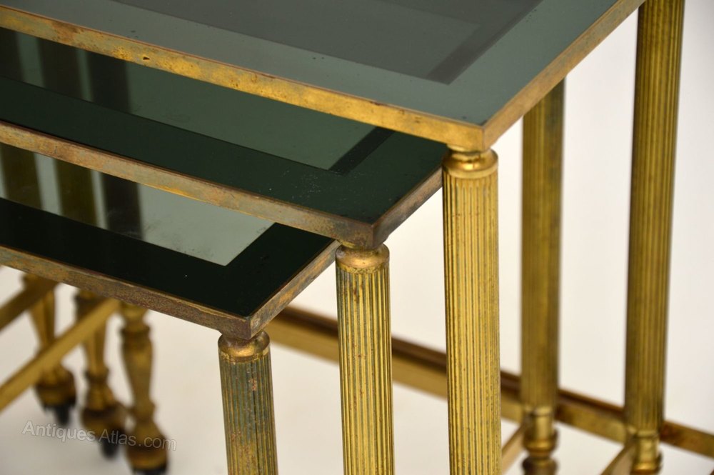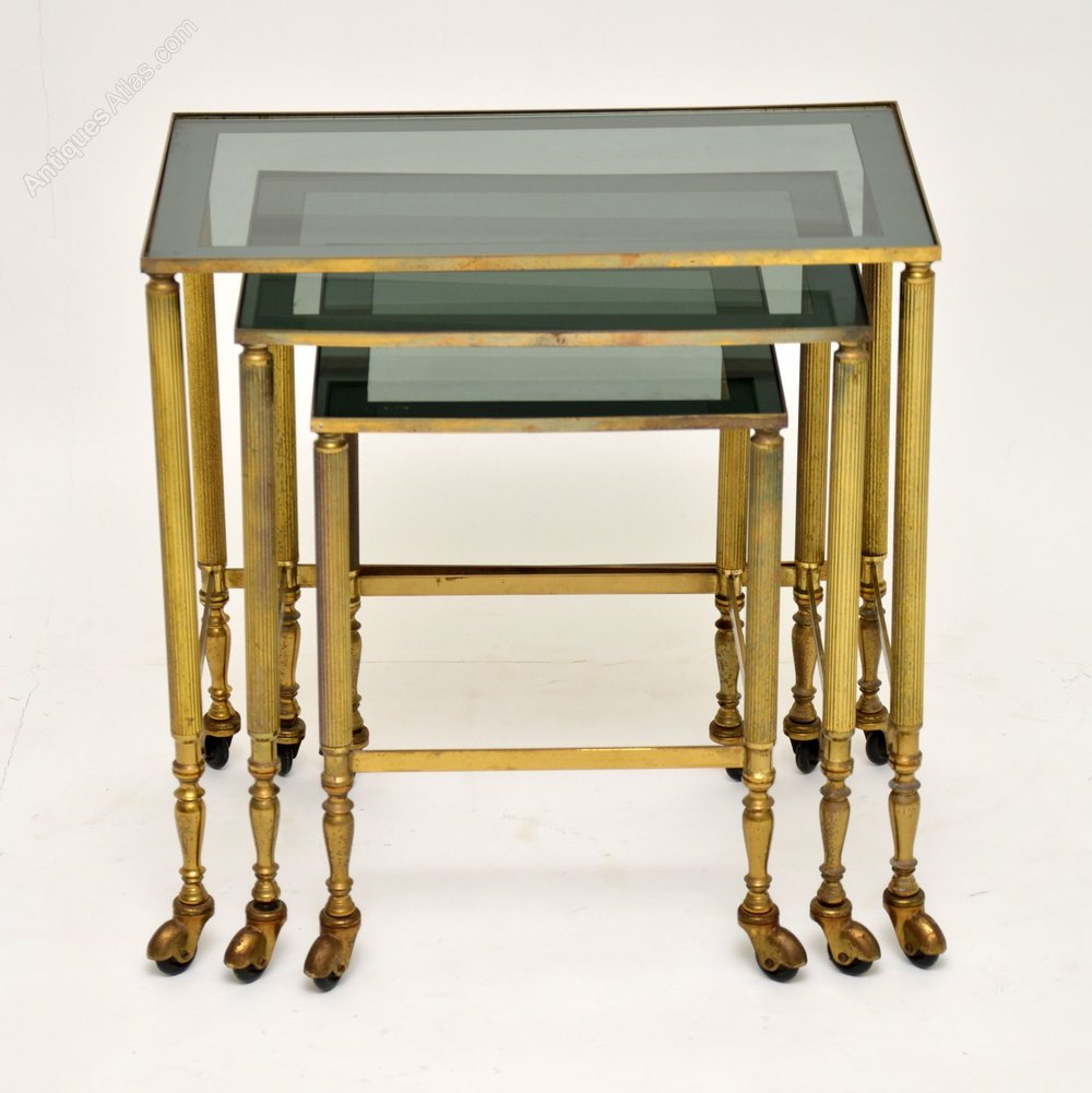 Vintage French Brass and Glass Set of Three Tables
