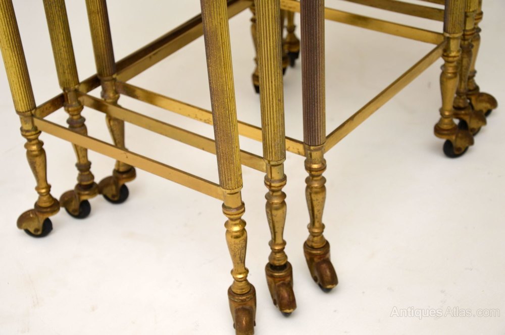 A stylish and well made vintage nest of brass antique tables on casters, these were made in France and date from the 1950-60’s. They are of great quality and are in lovely vintage condition, with only some minor surface wear here and there.