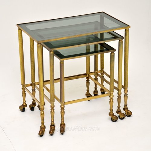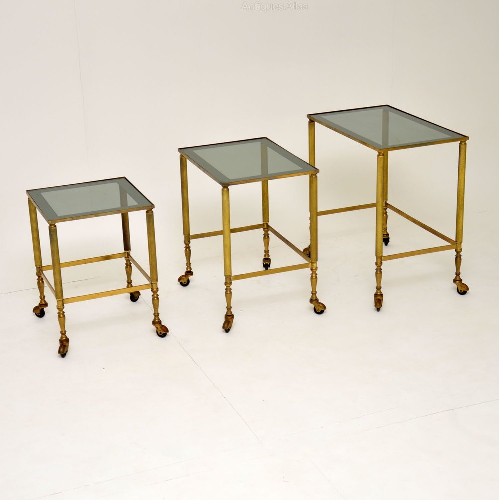 A stylish and well made vintage nest of brass antique tables on casters, these were made in France and date from the 1950-60’s. They are of great quality and are in lovely vintage condition, with only some minor surface wear here and there.