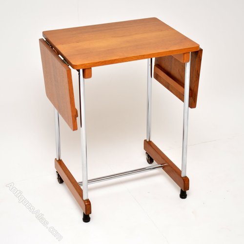 1950’s Vintage Oak & Chrome Drop Leaf Side Table