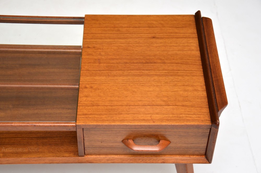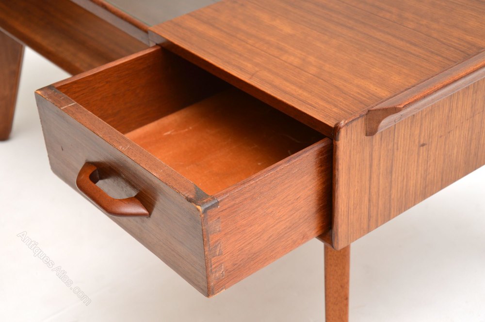 A beautifully styled vintage coffee table by G- Plan, this dates from around the 1950-60’s. It’s of great quality, made from tola wood, with an inset glass top.