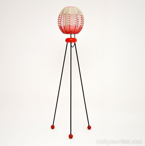 A stylish and unusual vintage floor lamp from the 1950-60’s, this has an amazing atomic design. The shade is beautifully spun from coloured plastic cord, the legs are steel and can be unscrewed easily from the wooden fixture. The condition is excellent and this has been rewired, it is in good working order.