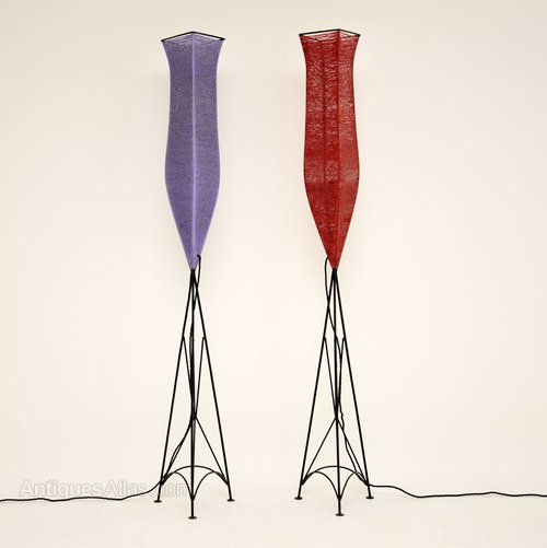 This is a very unusual and stylish pair of vintage floor lamps, dating from around the 1960’s. They are made with black painted steel frames, and shades that have been spun from a tough and colourful material. The result is very striking and beautiful. These are in good vintage condition and have been re-wired they are in good working order.