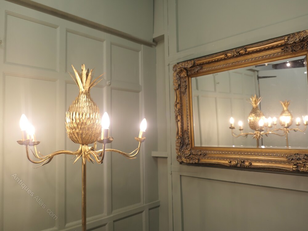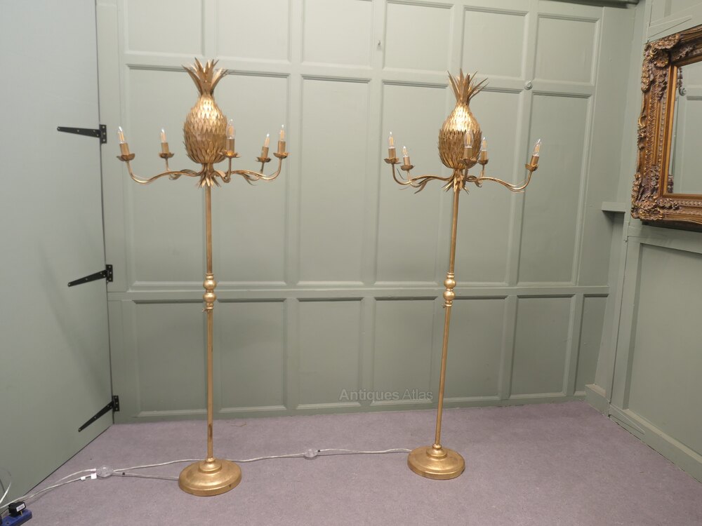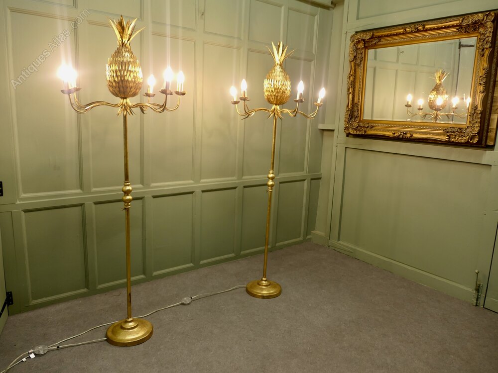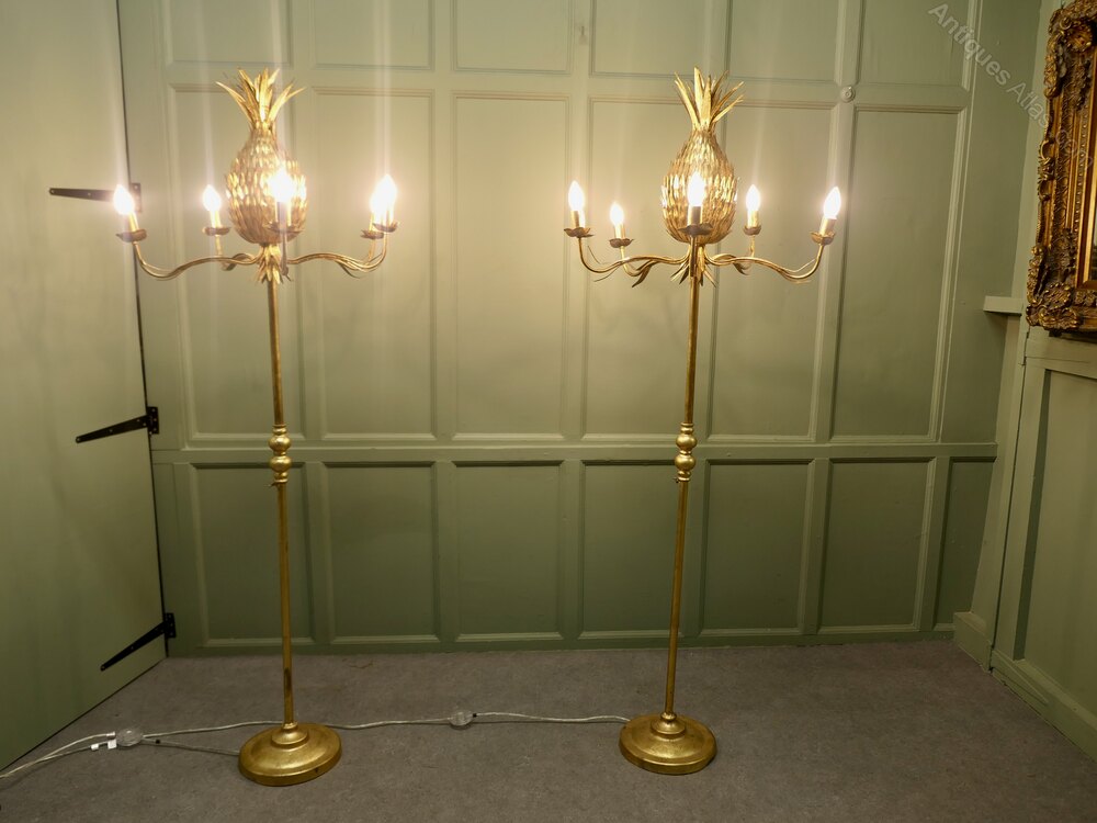 These Large 5 arm pineapple tree floor lamps have spiky top knots and sleek designers stands, they are both in good working condition.