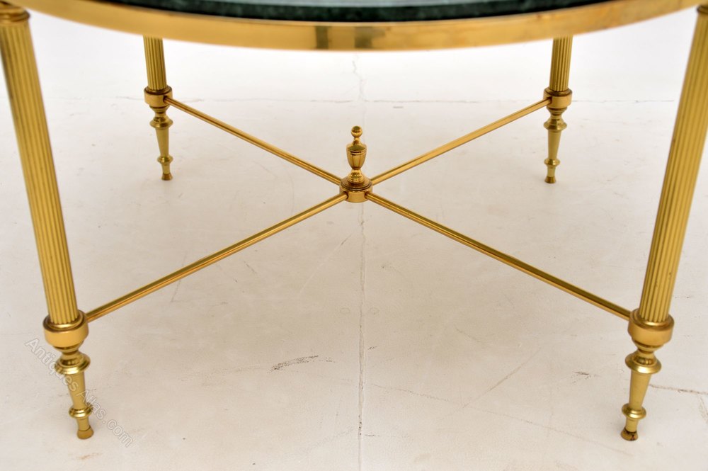 It is of superb quality and has a gorgeous design. The frame is elegant yet sturdy, the inset green marble top compliments the brass beautifully.