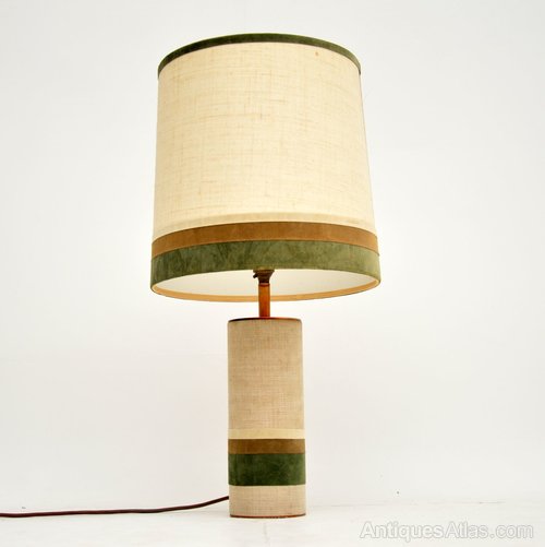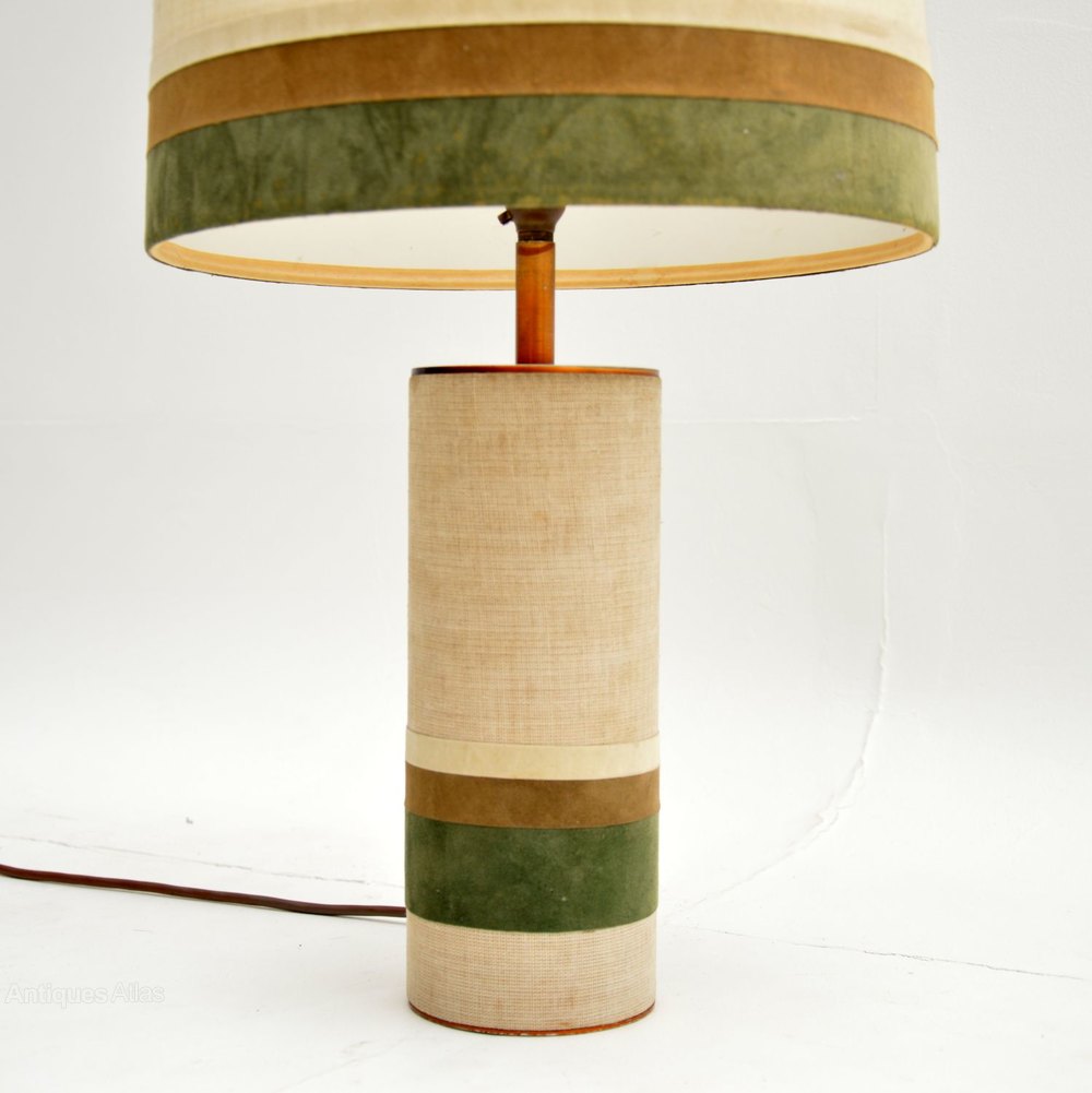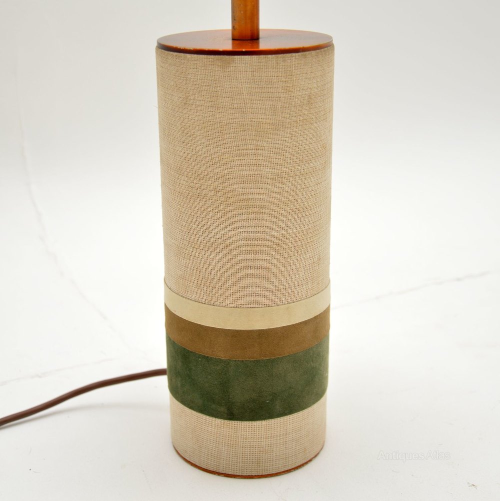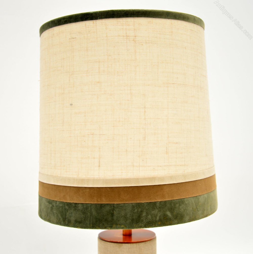 A gorgeous and unusual vintage table lamp, dating from the 1960-70’s. This has a copper base which is wrapped in fabric and velvet. The original shade is also wrapped in velvet and fabric, giving this a beautiful look. The condition is very good for its age, with only some light surface wear, and this is in good working order.