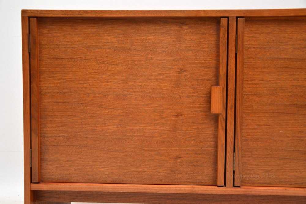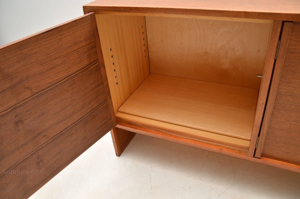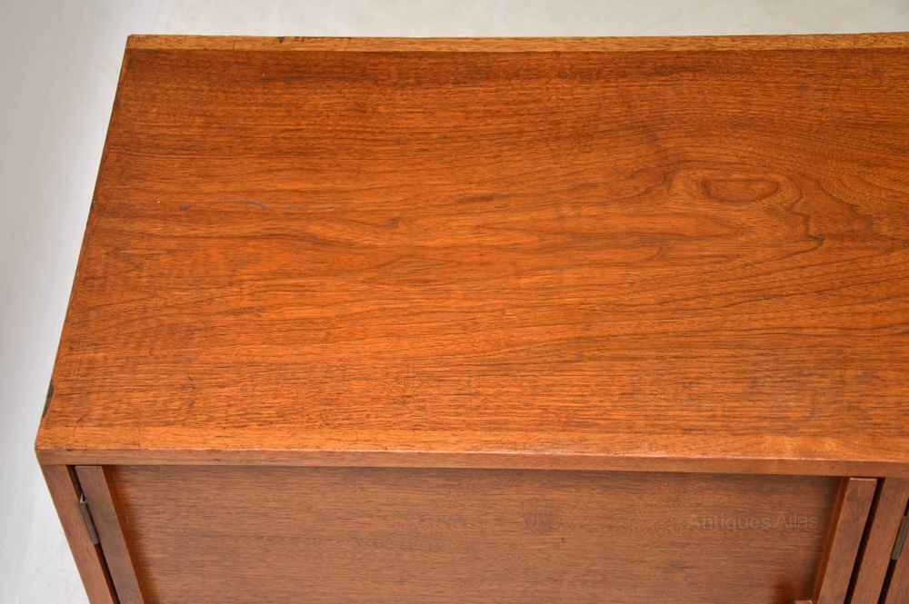 A stylish, compact and practical vintage sideboard in walnut, this dates from the 1960’s. It’s of excellent quality, with beautiful walnut veneers even on the inside of the doors. The interior is lined with sycamore, with two adjustable shelves. One cabinet is missing three shelf supports, we will replace those before sending this out. The condition is very good for its age, with only some minor wear here and there and a few small marks, mostly on the top and seen in the images.