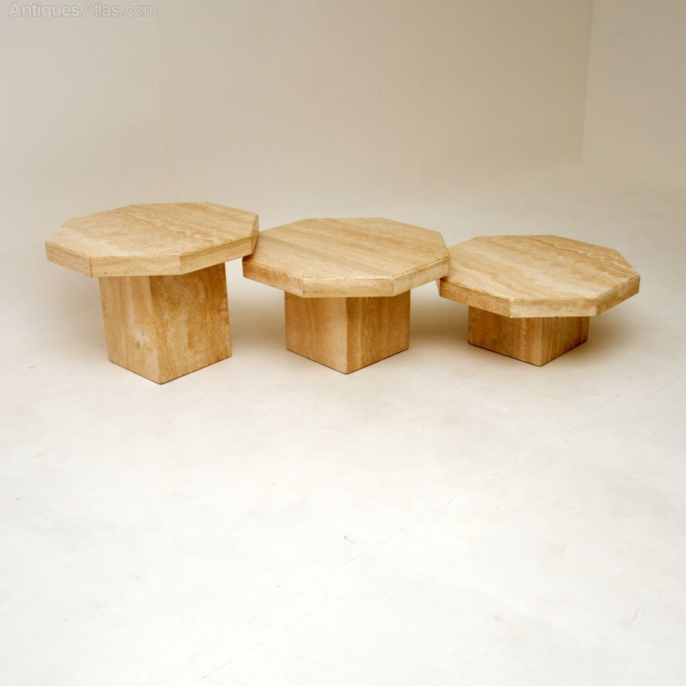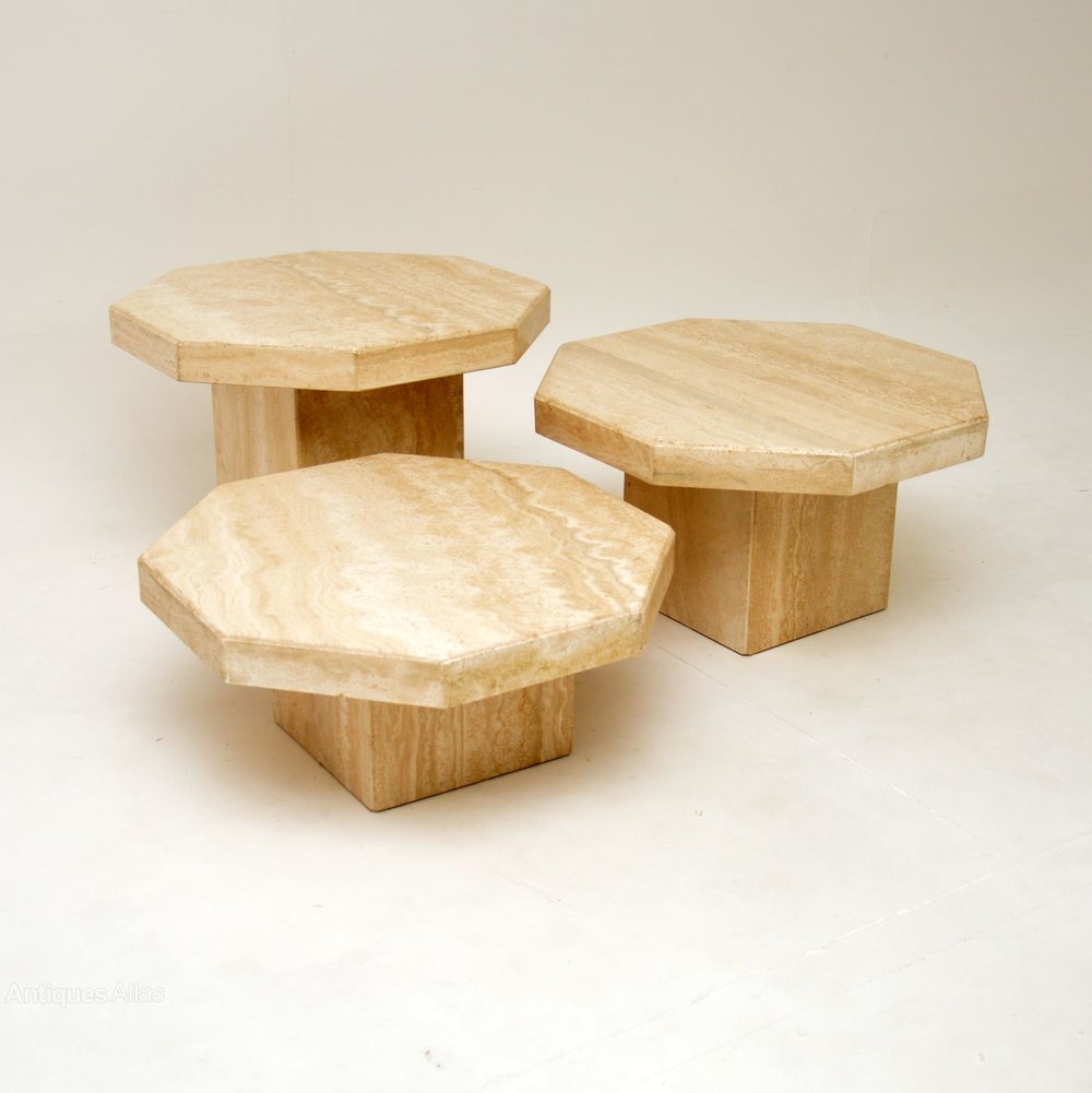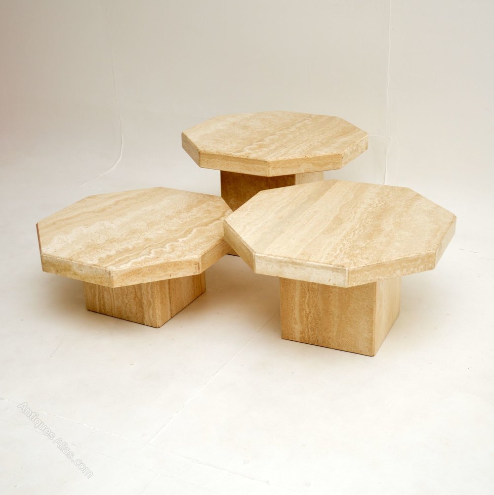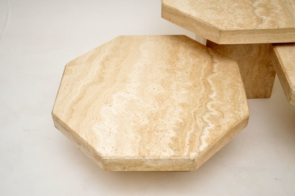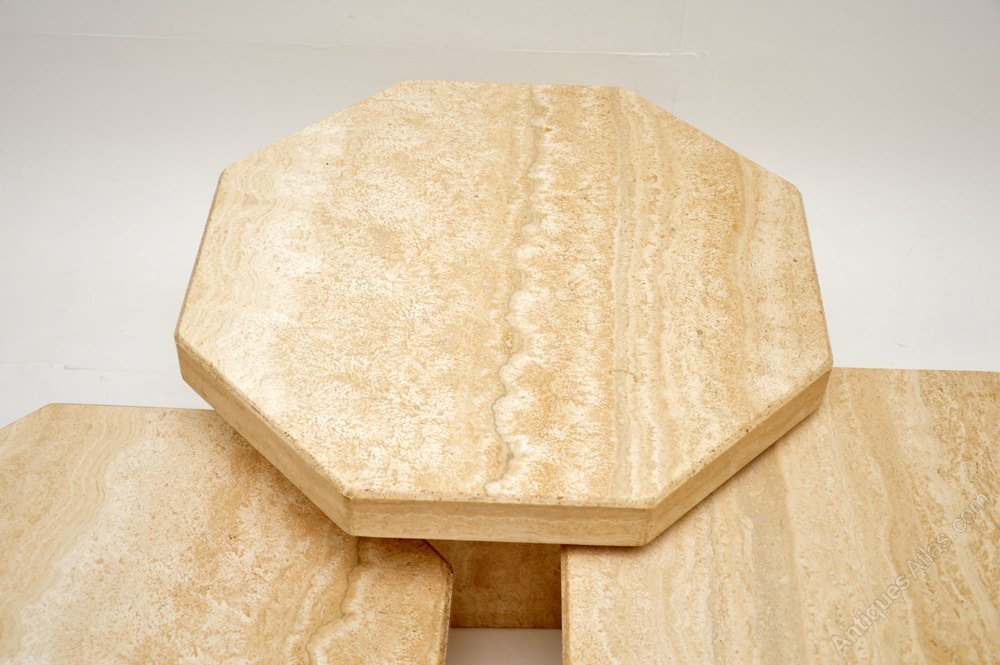 A beautiful set of Italian solid travertine coffee / side antique tables, dating from the 1970’s, made by Stone International.