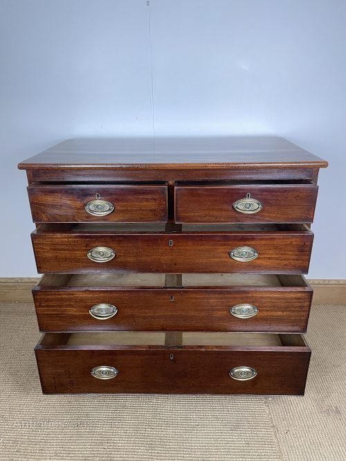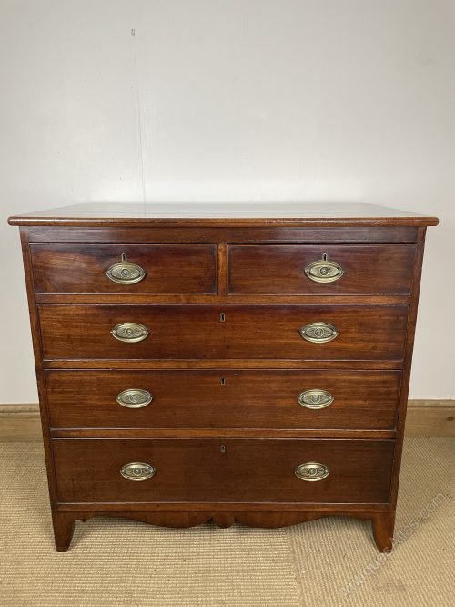 A truly delightful piece of early Victorian History. This stunning mahogany 2 over 3 chest of drawers has been crafted with incredible craftsmanship. Made out of solid mahogany with pine lined drawers. Amazing cross-banding around the top of the piece, bottom & lovely detail running on top of the drawers. The perfectly golden brass handles make this piece glow. You’ll be able to find anywhere for this piece in your home! This piece has been professionally restored by Taylors Directs in house restoration team with the upmost care & diligence to ensure the history has been kept alive whilst the detail still shines through for you to enjoy for decades to come.