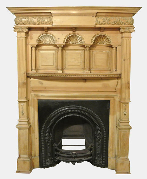 A Large Decorative Victorian Pine Fireplace.
