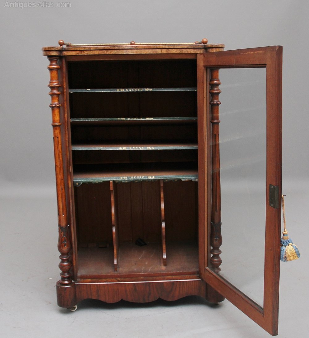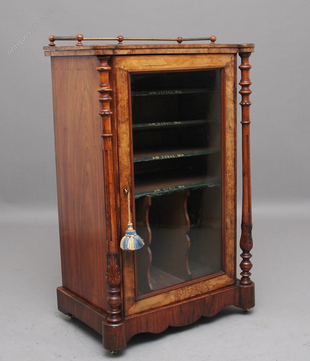 19th Century burr walnut inlaid music cabinet