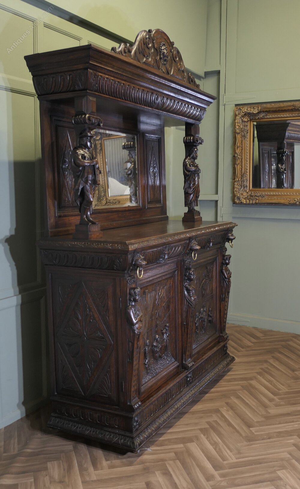 The dresser has a wonderful mature patina, fine carving and in generally good condition, there is a small patch of foxing to the bevelled mirror