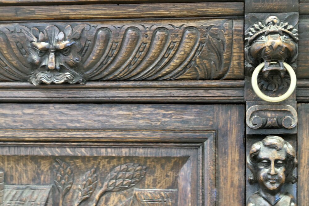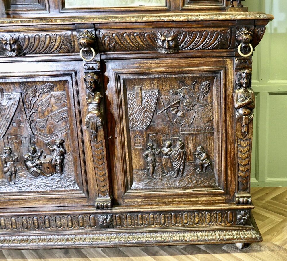 This is a superb and large piece, it has superb quality carvings of Musicians Dancers and Mythical creatures including the Green Man