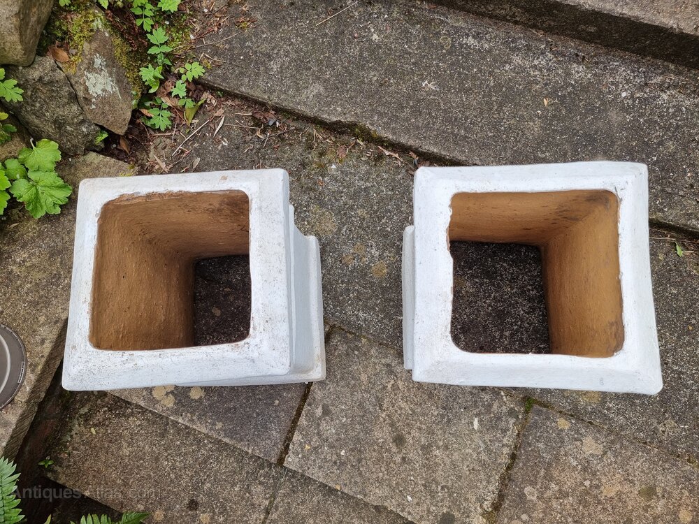 A pair of 19th Century Chimney Pots, painted white. Garden ready as pedestals or planters.