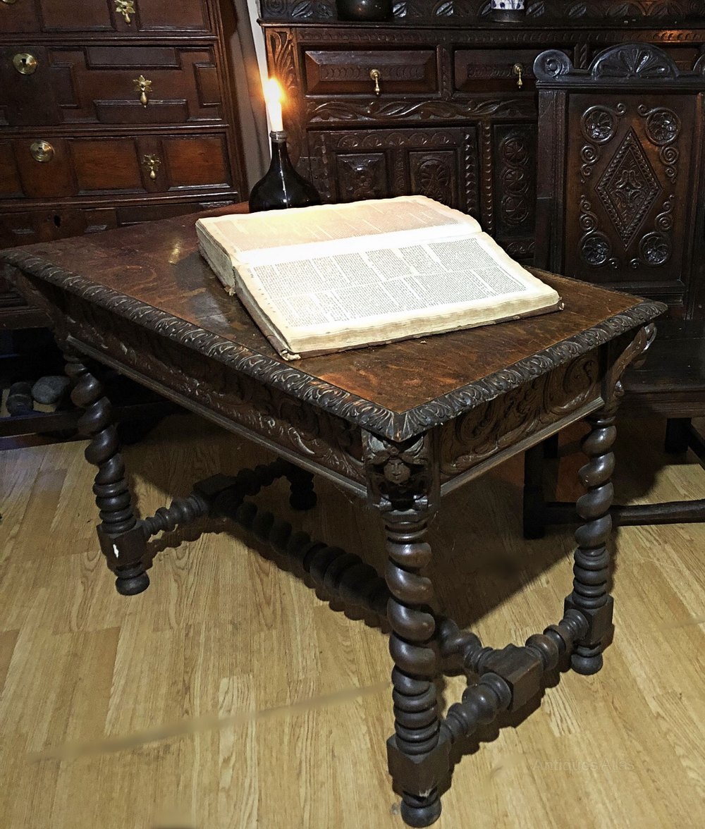 19th Century carved oak centre table with masks to each of the corners.
