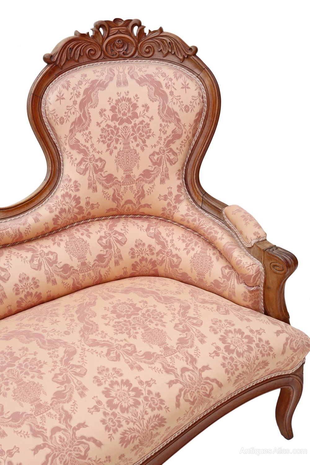Antique quality C1890 carved walnut sofa, settee or chaise longue.
