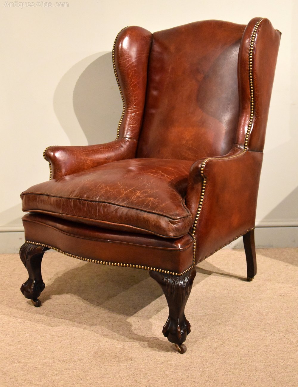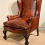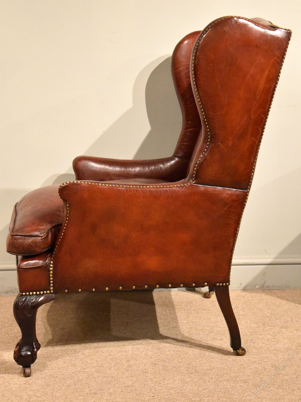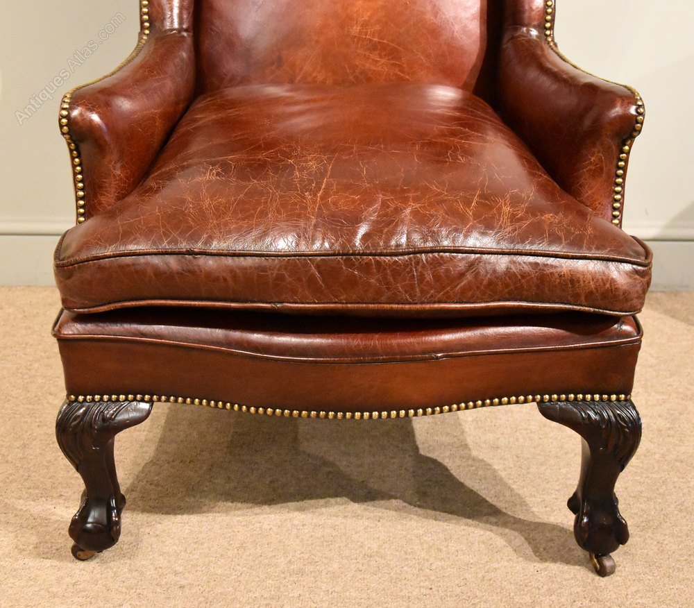 Stunning quality 19th century Georgian style gentleman's library chair by lamb of Manchester stamped. Reupholstered in burnt orange antiqued leather by Master craftsmen