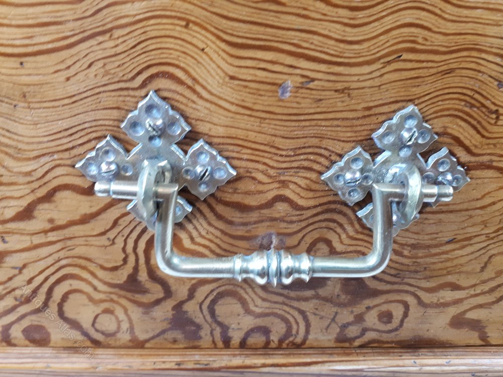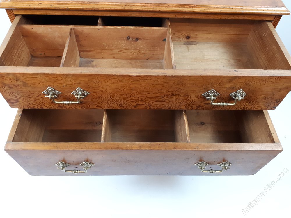 Originally a dressing chest with upper mirror section.The brass metalwork is all original and chest is on its original ceramic castors in good working order.
