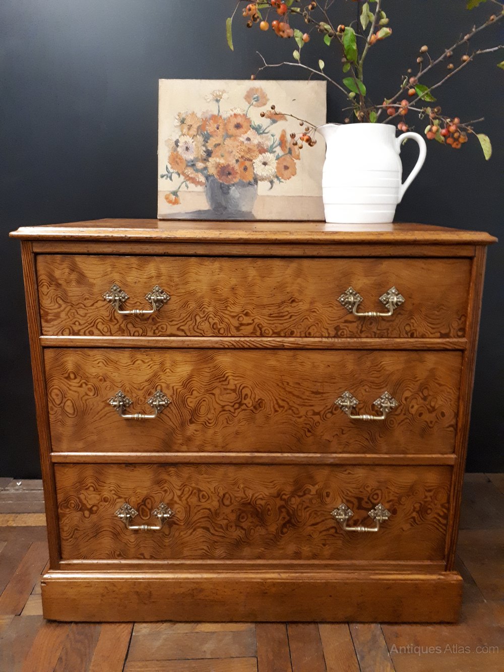 An attractive Victorian British made chest, circa 1880 in rare pitch-pine veneer.