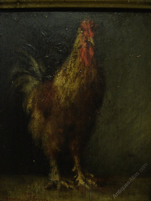 Ref 5587 - 19th Century oil on board French cockerel. Signed. Original frame. Circa 1880.
