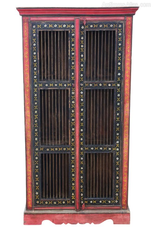 Tall Indian Folk Art Painted 5ft Shelved Cupboard