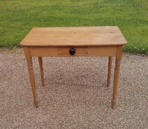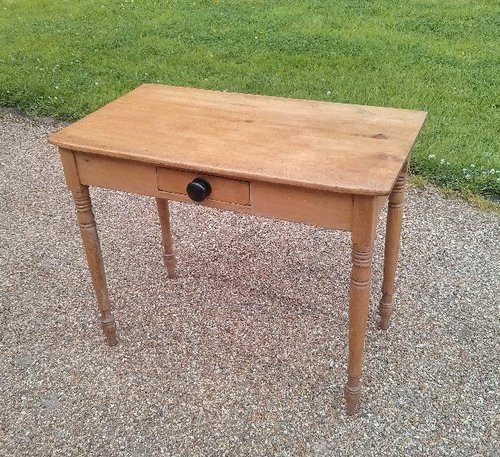 A very pleasing little pine side table / washstand / writing table. This very useful table can fit into lots of places. It is in tidy condition and has a rather fine turned leg from the 19th Century. We do not normally have pine items but this was sold by us around 25 years ago and has come back with some other items.