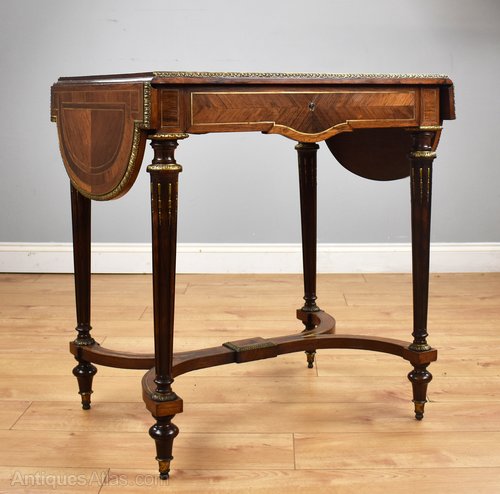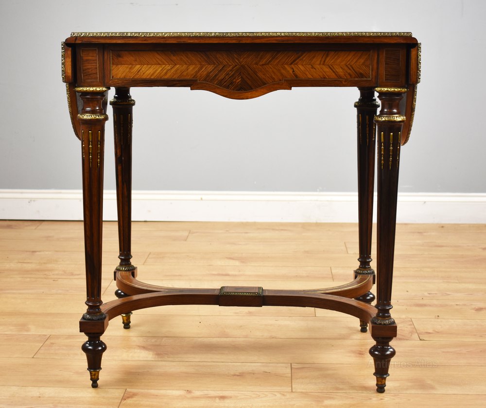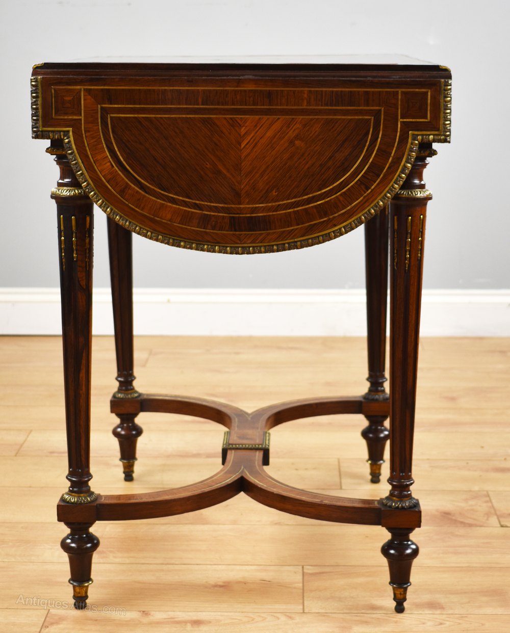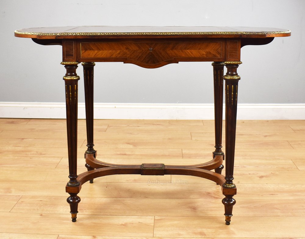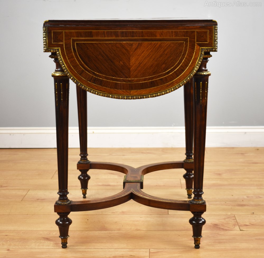 19th Century Rosewood Brass Inlaid Drop Leaf Table
