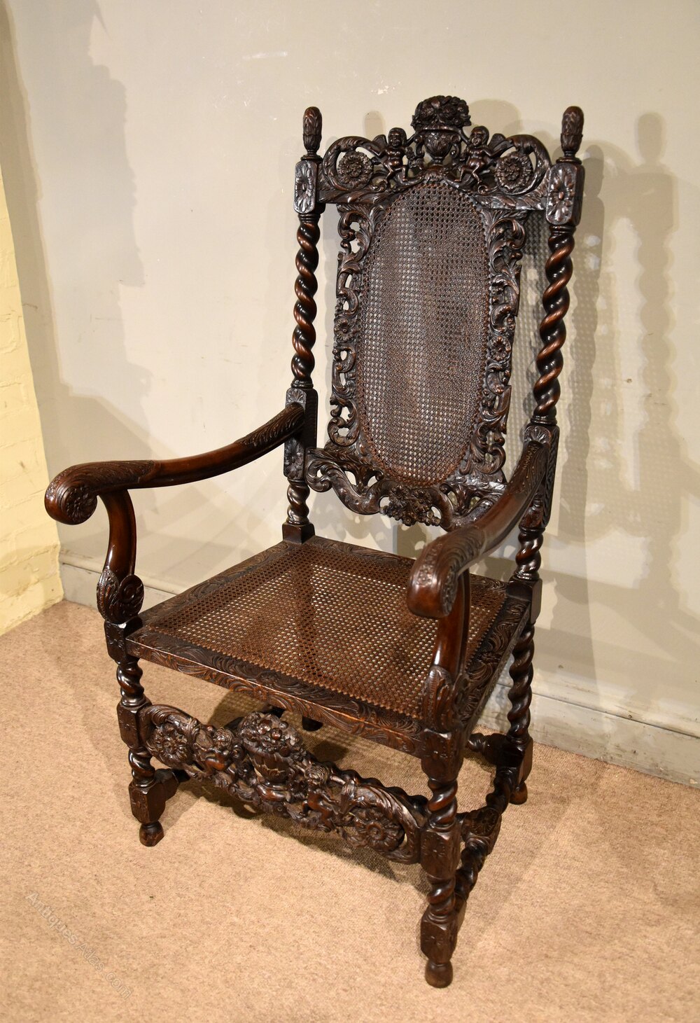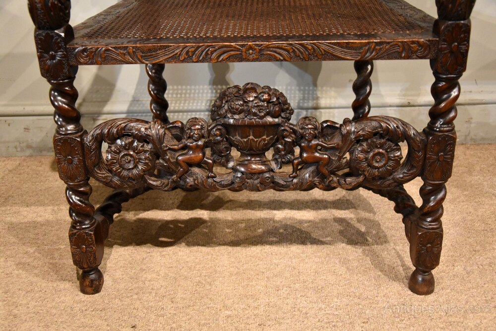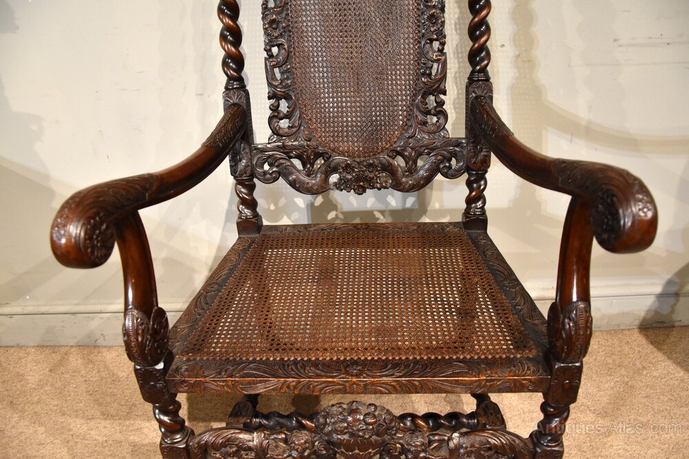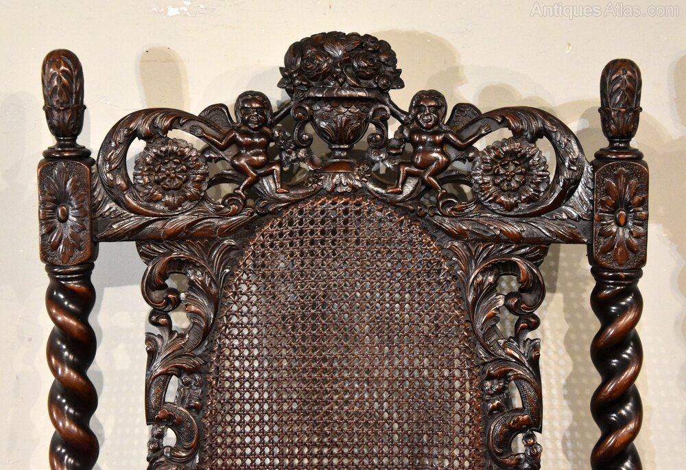 A 19th century walnut heavily carved Charles II style chair very fine carvings