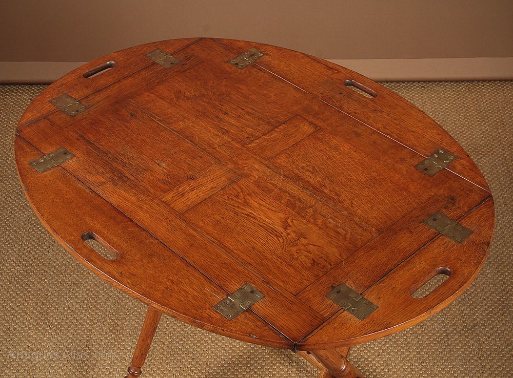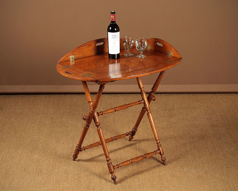 19th.c. Campaign Type Oak Butler’s Tray & Stand.