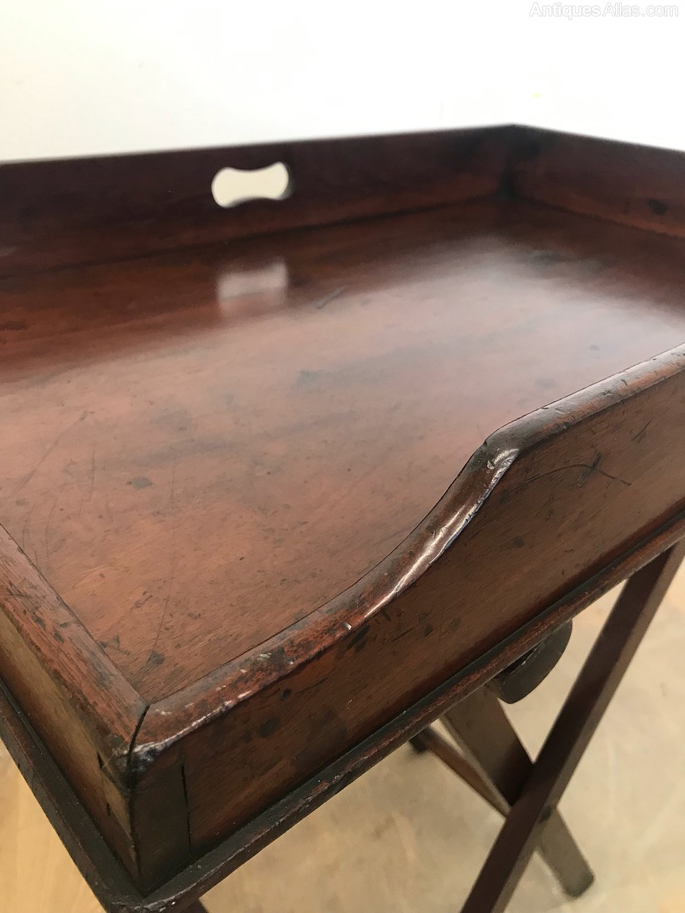 19thC mahogany butlers tray on stand
