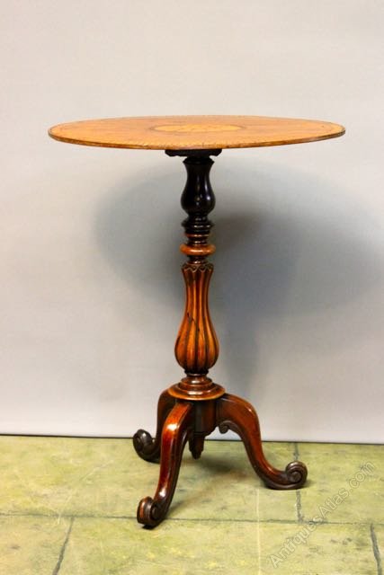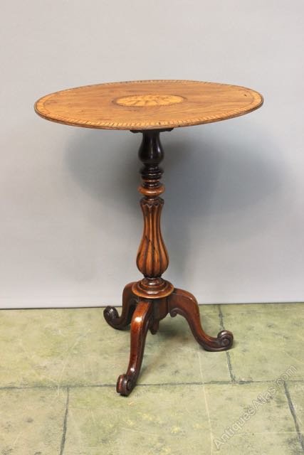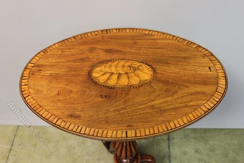 19thc. Mahogany Inlaid Tripod Table with oval top