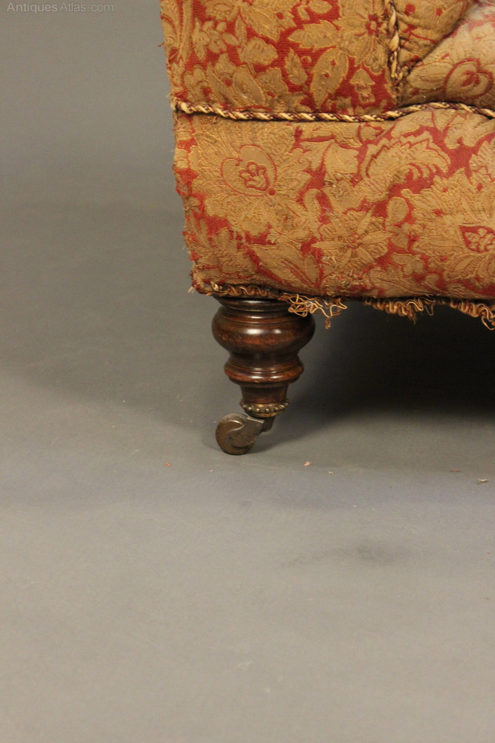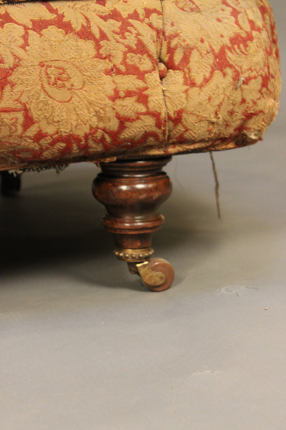 with original (tatty) fabric. The legs with brass studded colored castors.