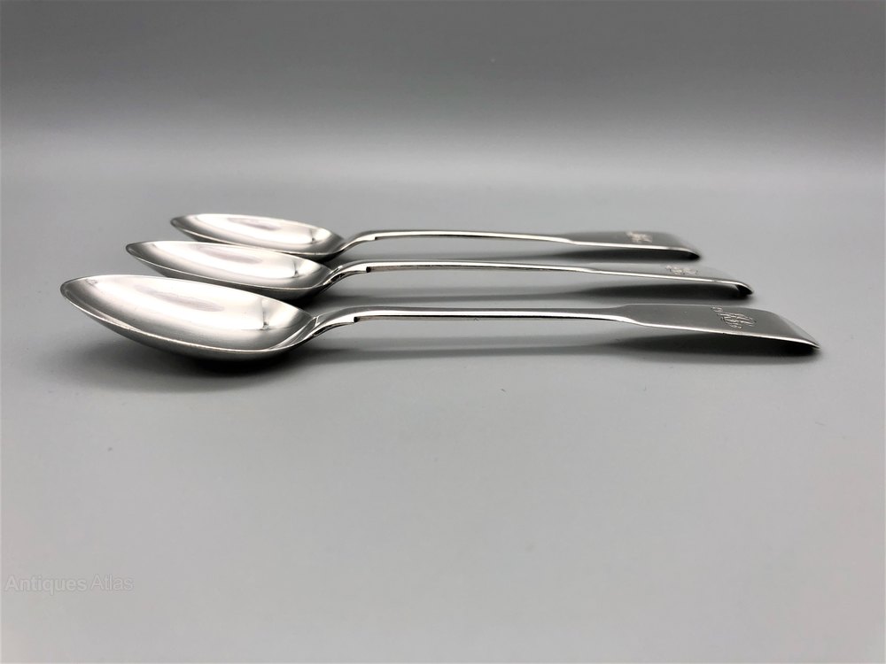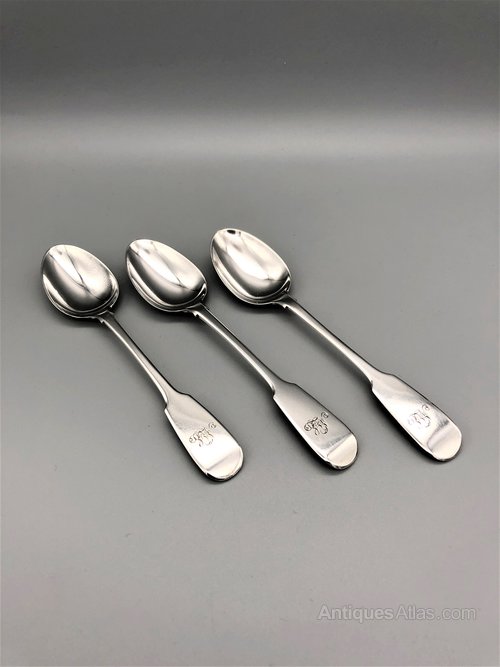 Here we have a nice set of 3 Victorian Sterling Silver Teaspoons in the classic Fiddle pattern. The spoons are made in York by James Barber and date to 1853. James Barber, a specialist spoon maker, was in business, either alone or in various partnerships, between 1812 and 1858, when the York assay office was closed. He was at that point the last remaining silversmith in York.
