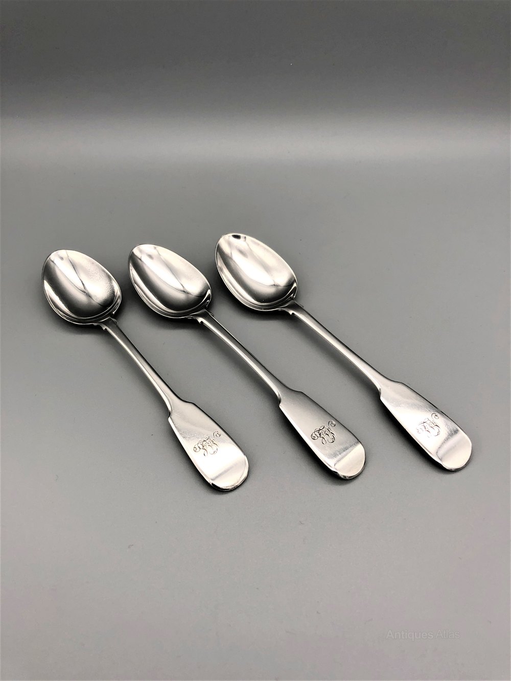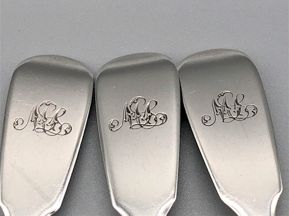 Condition of the spoons is very good with no dings or dents and only the minimal surface wear you would expect after nearly 170 years. The initials "ML" are elegantly engraved at the top of each spoon. Please make sure to view all the photographs.