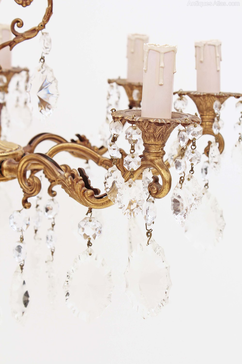 There will be some historic knocks, marks, chips, minor damage and repairs as one may expect given it's age. Some crystals will have been replaced. Some of the candle tubes will have gone a little discoloured and crumbly (through heat) as is usual (new ones are readily available from 'Kings Chandeliers' if desired (usually £1 to £2 each).