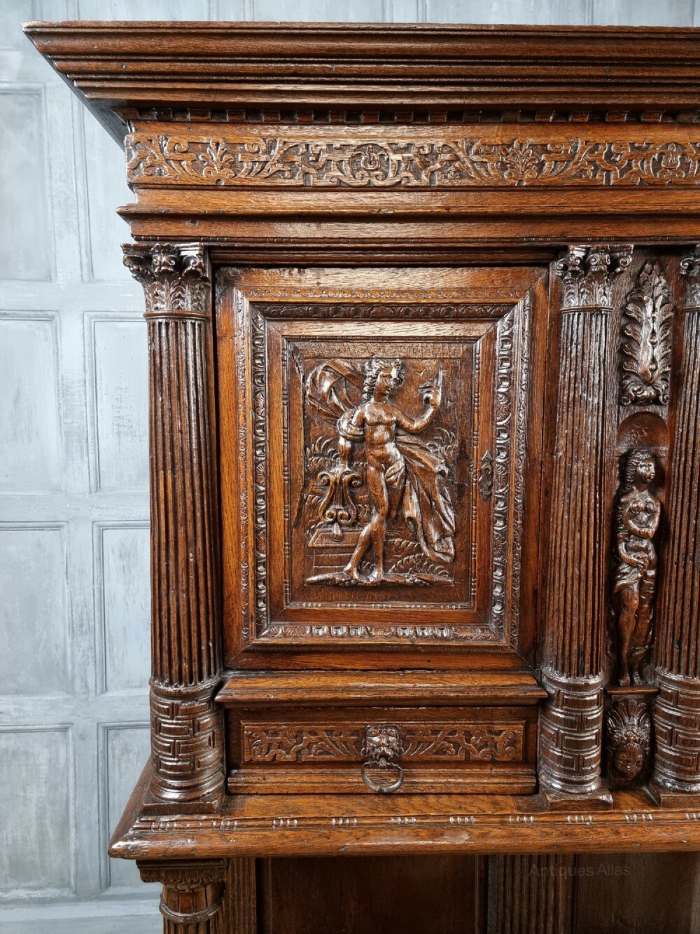 2 Door Carved Gothic Oak Cupboard, Sideboard