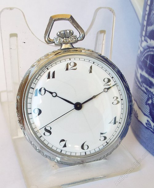 The watch measures 42mm diameter excluding the stem and the loop. The case is chrome plated nickel. The case has light surface marking from use but overall it is in nice condition for a 1930s piece.