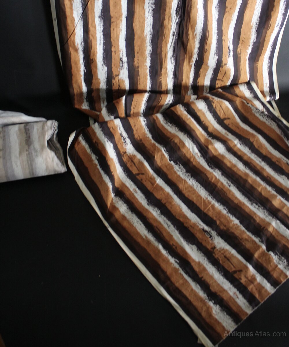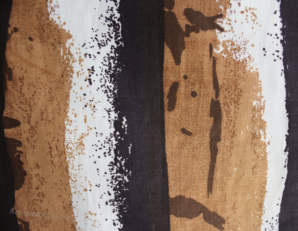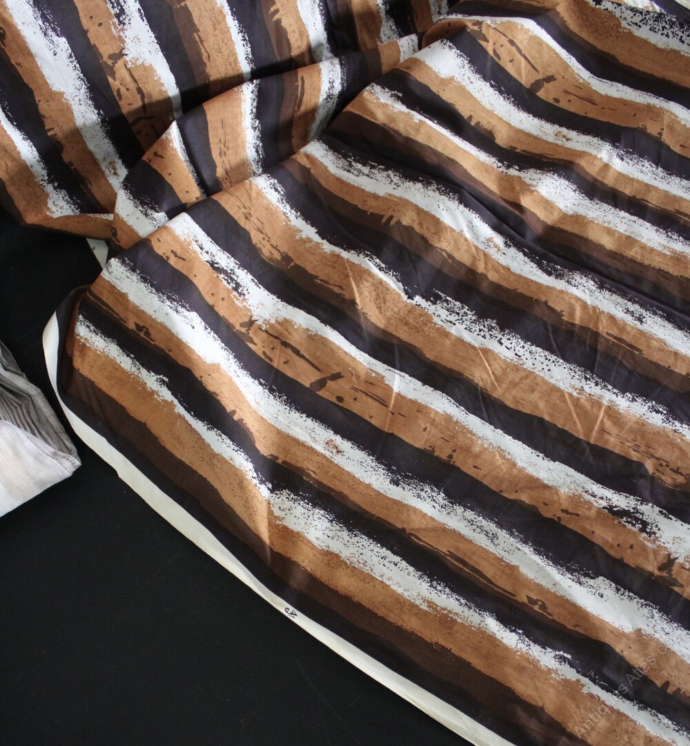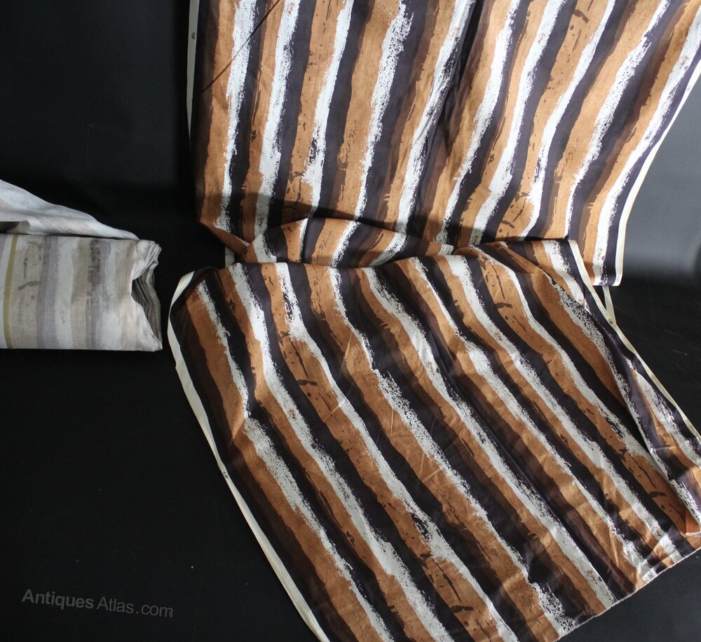 A Bale of Edinburgh Weavers "Aurora" fabric .Cliff Holden. A bale of unused fabric designed by Cliff Holden circa 1959 and examples held in the V& A museum London. Striped white and Brown. 120 cm width. Priced per meter, 120 meters available.
