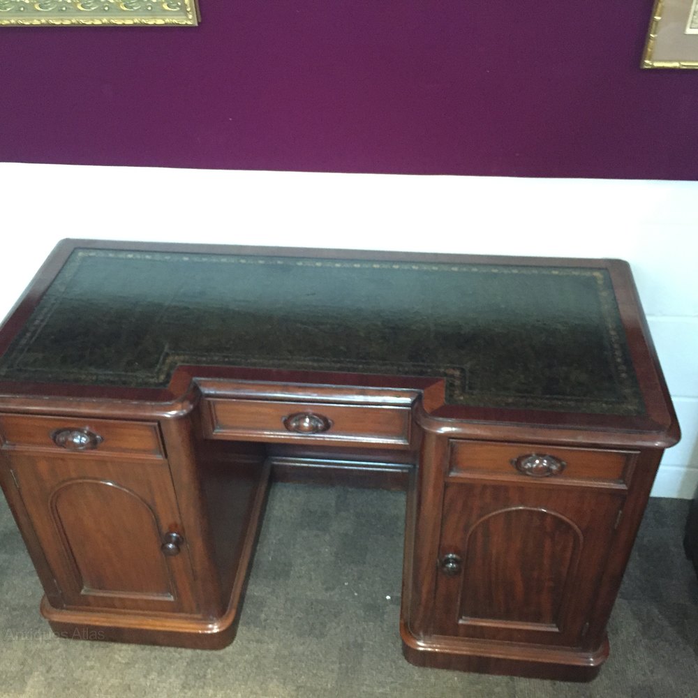A Beautiful Victorian Mahogany Kneehole Desk with a new green top writing surface